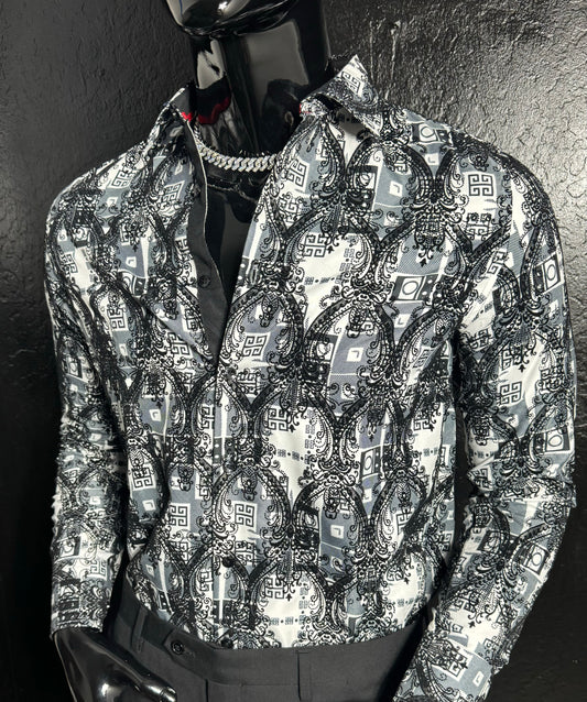 Galan Flower Rhinestone Dress Shirt